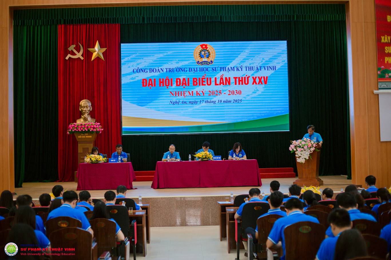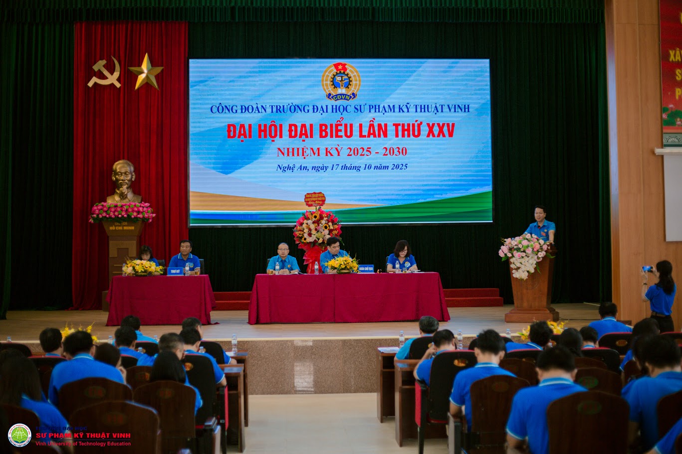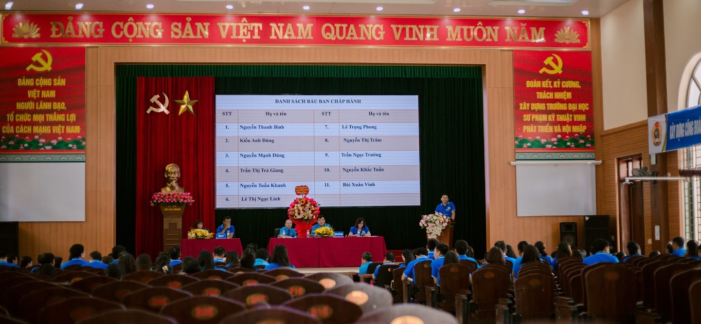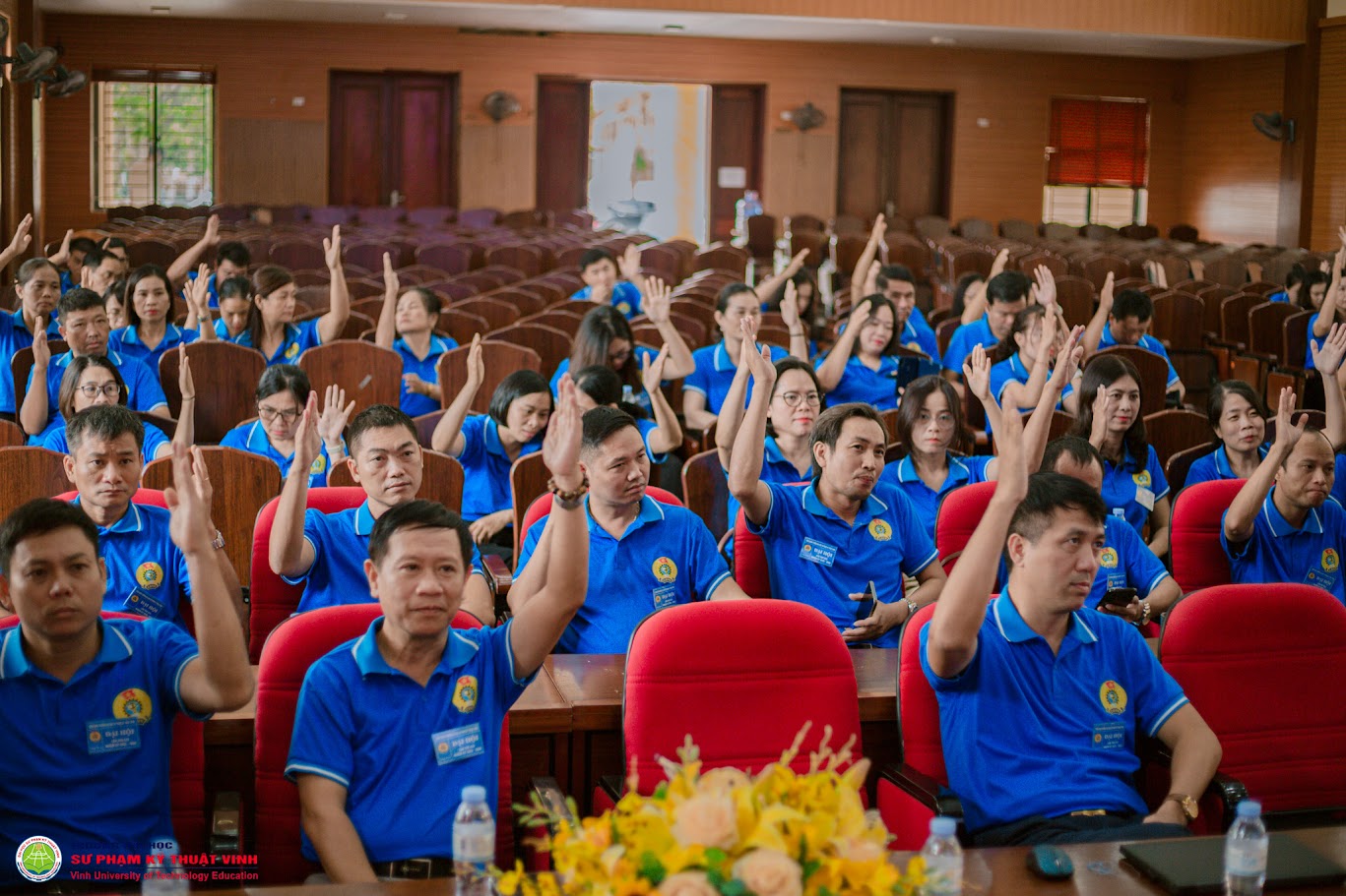Với tinh thần trách nhiệm cao đại hội đã bầu Ban Chấp hành Công đoàn Trường khoá XXV, nhiệm kỳ 2025 - 2030 gồm 11 đồng chí, bầu Ban Thường vụ gồm 3 đồng chí, bầu đoàn đại biểu của Công đoàn Trường Đại học Sư phạm kỹ thuật Vinh dự Đại hội Công đoàn Phường Trường Vinh lần thứ 1, nhiệm kỳ 2025 – 2030 gồm 5 đồng chí. TS. Nguyễn Thanh Bình, Ủy viên Ban Chấp hành Đảng ủy, Chủ tịch Công đoàn trường khóa XXIV, nhiệm kỳ 2023- 2025 được tín nhiệm bầu tái cử Chủ tịch Công đoàn trường khóa XXV, nhiệm kỳ 2025 – 2030.