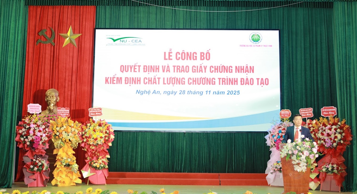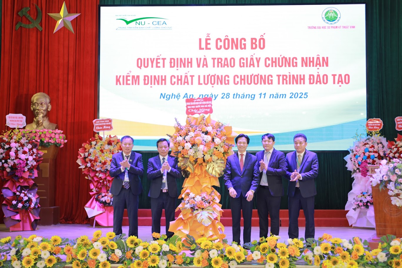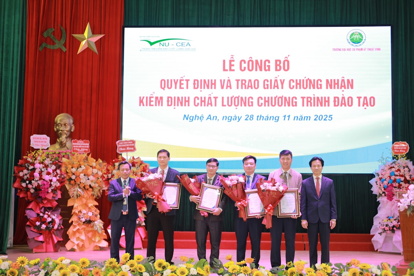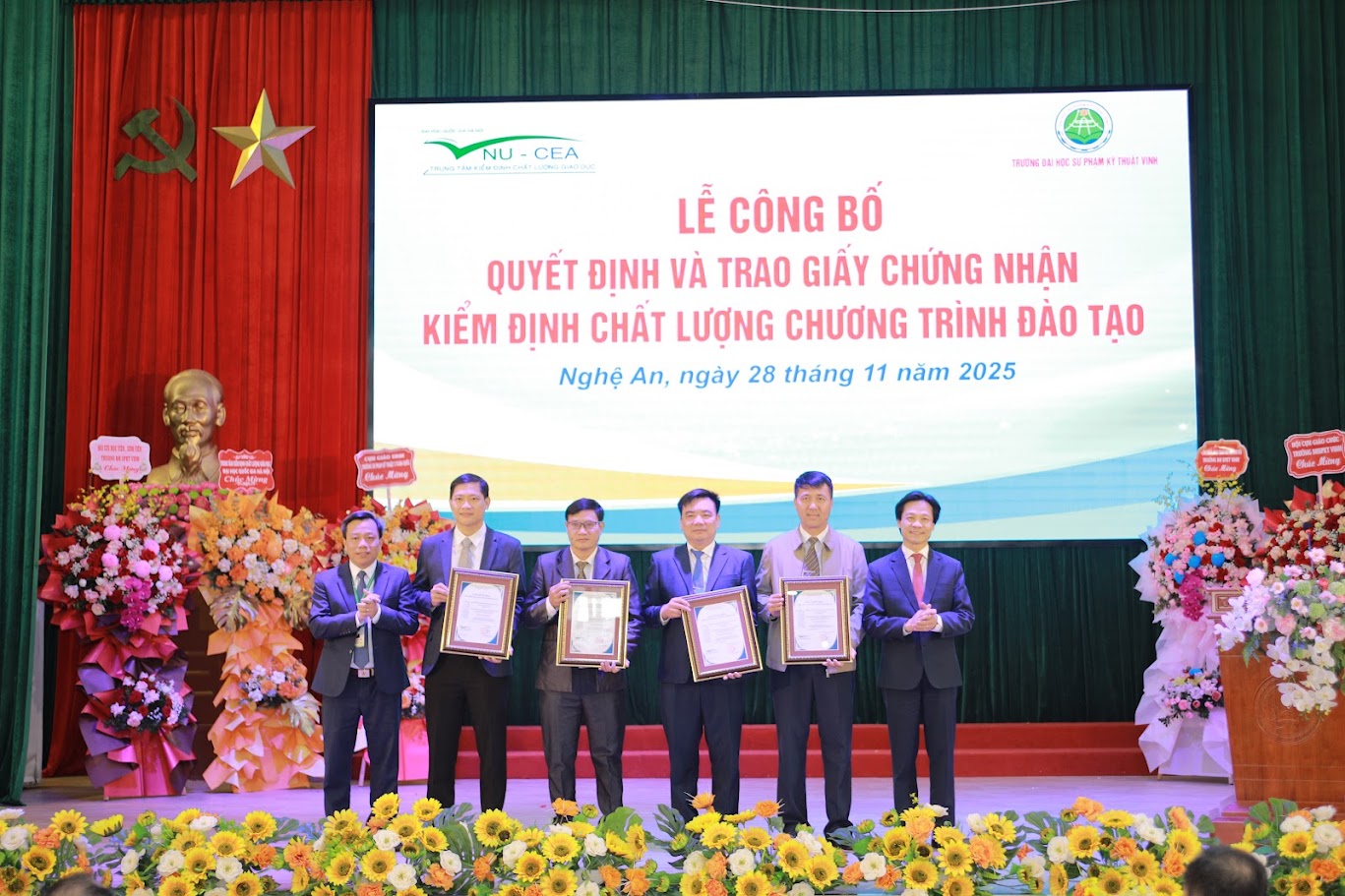 Năm 2025, Trường Đại học Sư phạm Kỹ thuật Vinh hoàn thành quy trình kiểm định khắt khe và chính thức được công nhận đạt chuẩn chất lượng giáo dục cho 9 chương trình đào tạo, trong đó có 8 chương trình đào tạo đại học và 1 chương trình đào tạo thạc sĩ mũi nhọn.